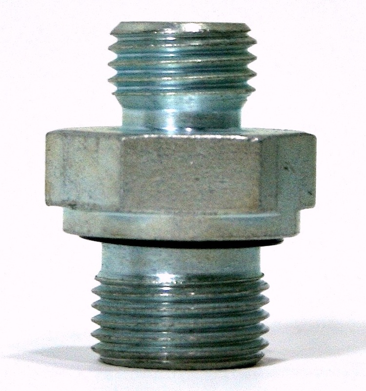 Dieses Drosselrückschlagventil ist in einer handelsüblichen Hydraulikverschraubung integriert. Zum Verbraucher hin arbeitet das Ventil gedrosselt fest eingestellt auf 8L/min. Das abfließende Hydrauliköl ist ungedrosselt.