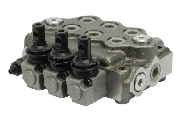 Dieses Steuerventil ist in einer sehr kompakten Bauweise ausgeführt. In diesem Monoblock sind drei doppelt wirkende Funktionen (auch einfachwirkend lieferbar) und ein Druckbegrenzungsventil integriert. Es ist auch in Varianten mit Schwimmstellung (Artikelnummer 32058), mit Weiterlaufverschraubung (Artikelnummer 32057) oder mit Verschraubung für gesperrtes System (Artikelnummer 32056) sowie mit Schwimmstellung + Weiterlaufverschraubung (Artikelnummer 32060) oder Schwimmstellung + Verschraubung für gesperrtes System (Artikelnummer 32059) erhältlich.