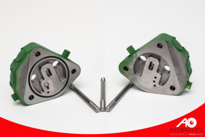 Zwischenplatte für John Deere 6000 und 7000 -L-; mit P, R und LS Anschluss; grün lackiert; inkl. 3 Stehbolzen M10 x 1 x 120